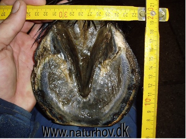 hoven udvider sig (set oppefra) når der ikke er sko på. De korte tykke skrå